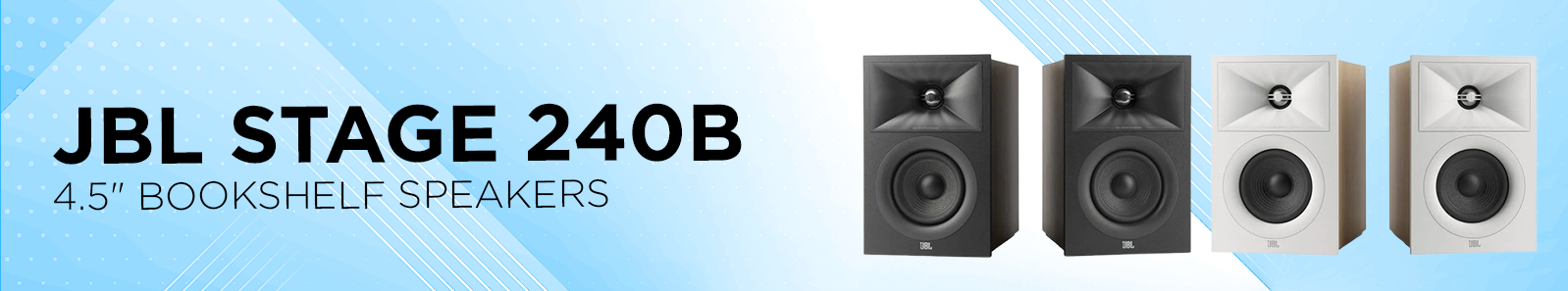 The Stage 240B is the smallest bookshelf speaker in JBL's new Stage series. Features a 2-way design with Next Generation patented High-Definition Imaging (HDI™) waveguide geometry, 1-inch (25mm) Anodised Aluminium dome tweeter, and a 4.5-inch (114mm) Polycellulose cone woofer that produces JBL's signature deep bass.