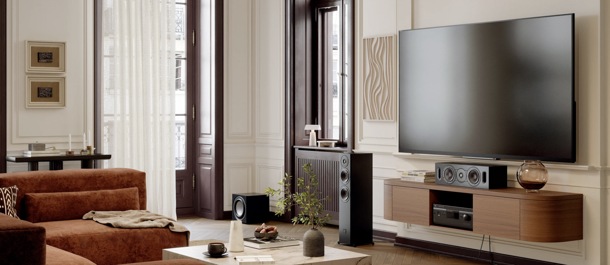 SONIK CINEMA adapts to your room and your system. Whether placed horizontally as a centre channel or vertically as left or right speaker, it maintains perfect performance and design balance. Its versatile form and refined details let you enjoy powerful sound without compromising on space, aesthetics, or flexibility.