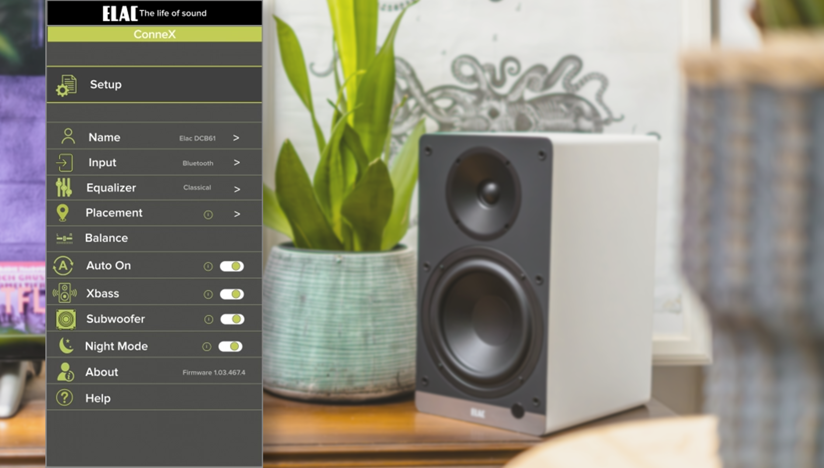 The ELAC Connex Speaker features a custom-designed app for effortless setup and control. Easily fine-tune EQ settings, optimize placement, adjust Auto On, and manage volume—all from your smartphone. Experience seamless configuration and personalized sound at your fingertips.