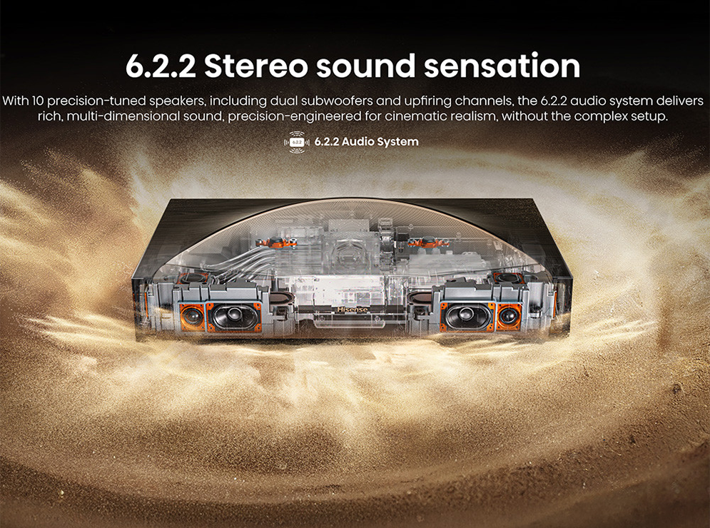 Physically, the Hisense L9Q measures 29.6 x 17.4 x 12 inches and weighs just under 13 kilograms, blending power with portability. Its design draws inspiration from classical architecture, combining elegance with modern engineering to stand out visually as much as technologically. Automatic screen alignment and keystone correction simplify setup, making it easy to achieve accurate projection on screens up to 200 inches.