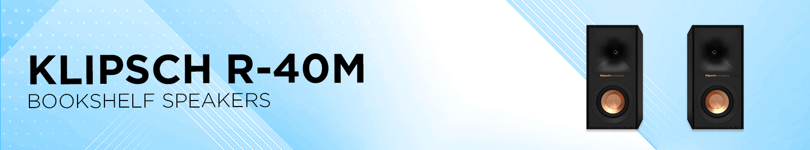 The Klipsch R-40M is the smallest compact bookshelf speaker from Klipsch. Although its size it still offers intense and immersive home theatre entertainment. With its new and redesigned larger Tractrix horn and copper-clad TCP polymer drivers, the R-40M dramatically upgrades your home entertainment.