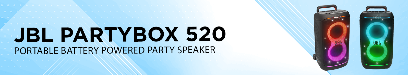 | Features | JBL PartyBox 520Power input: 100 – 240 V ~ 50 / 60 Hz Output power: 400 W RMS (IEC60268) Transducer: 2 x 7.5 inch (208 mm) woofers, 2 x 1 inch (25 mm) dome tweeters Frequency response: 40 Hz – 20 kHz Signal-to-noise ratio: > 80dB Input sensitivity: • Aux-In: 250 mV RMS (3.5 mm connector) • Mic-In: 20 mV RMS • Guitar-In / Line-In: 100 mV RMS • Bluetooth/USB input: -12 dBFS Bluetooth® version: 5.4 Bluetooth® profile: A2DP V1.4, AVRCP V1.6 Bluetooth® transmitter frequency range: 2.4 GHz - 2.4835 GHz Bluetooth® transmitter power: ≤ 18 dBm (EIRP) Bluetooth® transmitter modulation: GFSK, π/4 DQPSK, 8DPSK USB format: FAT16, FAT32 Supported formats: .MP3, .WAV, .WMA, .FLAC (not available for EMEA region) USB-C charge out: PDO (5 V / 3 A, 9 V / 3 A, 15 V / 2 A, 20 V / 1.5 A), PPS (5 - 11 V / 2.7 A, 5 - 16 V / 1.85 A) Cable type: AC power cable (type varies by regions) Cable length: 2.0m / 6.6ft Product dimensions (W x H x D): 415 x 769 x 369 mm / 16.34” x 30.28” x 14.53” Battery type: JBL BATTERY 600, Li-ion 99.02 Wh (equivalent to 21.6 V / 4584 mAh) Battery charge time: 3 hours (speaker off mode) Music play time: up to 15 hours (varies by volume level and audio content)
