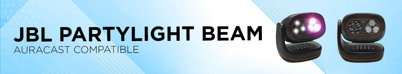 The JBL PartyLight Beam syncs automatically with JBL PartyBox* lightshow or your music, turning your party into an awesome sensory experience. *Auracast enabled