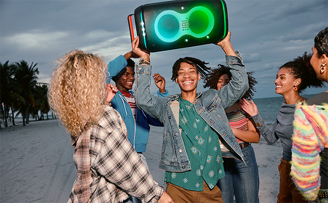 An unforgettable party doesn't just sound incredible—it should look amazing too. Now you can create your own immersive environment with the JBL PartyLight Beam.