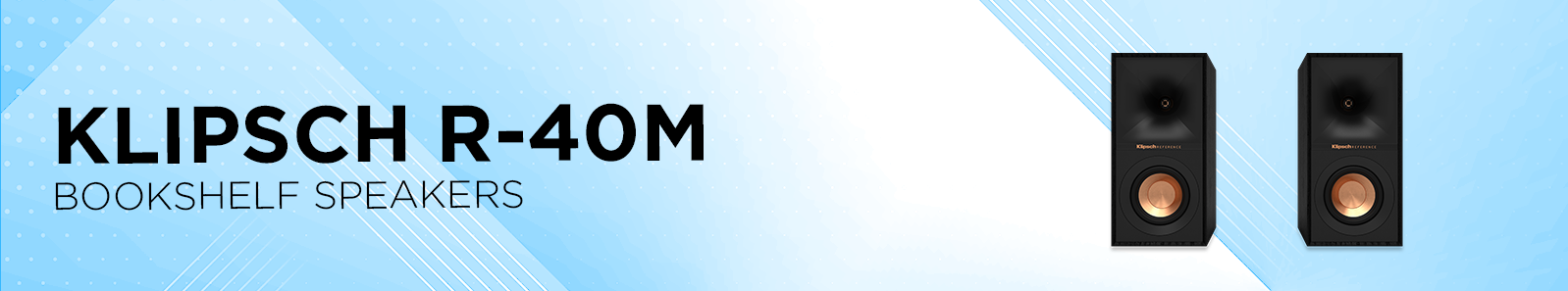 The Klipsch R-40M bookshelf speakers offer compact size with energetic, detailed sound. Ideal for stereo listening or surround duties, they combine a Tractrix horn tweeter with copper-spun woofers for lively, room-filling performance in smaller spaces.