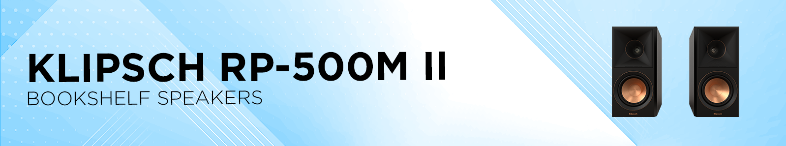 | Features | Klipsch RP-500M II Bookshelf SpeakerFrequency Response: 50-25kHz +/- 3dB Sensitivity: 92dB @ 2.83V / 1m Power Handling (Cont/Peak): 75W/300W Nominal Impedance: 8 Ohms Compatible Crossover Frequency: 1530Hz High Frequency Driver: 1" Titanium LTS Vented Tweeter with Hybrid Cross-Section Expanded Tractrix® Horn Low Frequency Driver: 5.25" Cerametallic Cone Woofer with Faraday rings Enclosure Material: MDF (Internally Braced) Enclosure Type: Bass Reflex via rear-firing Tractrix® Port Inputs: Single aluminum binding posts Height: 13.56" (34.4 cm) Width: 6.81" (17.3 cm) Depth: 10.65" (27.0 cm) Product Weight: 13.1lb (5.95kg) Finish: Ebony, Walnut