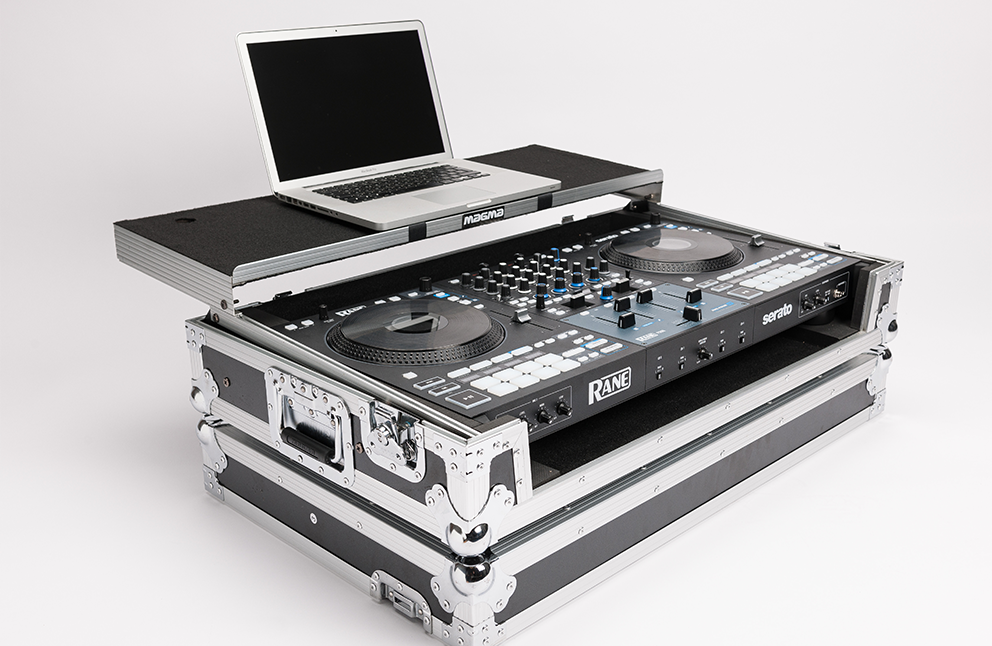 Customized to transport and protect the Rane Four DJ-Controller, this workstation case is crafted from 9 mm vinyl laminated plywood and reinforced with sturdy aluminum profiles and heavy-duty butterfly latches. It ensures safe and reliable transport while doubling as a practical workstation, keeping your equipment fully protected on the move.