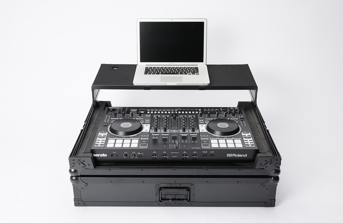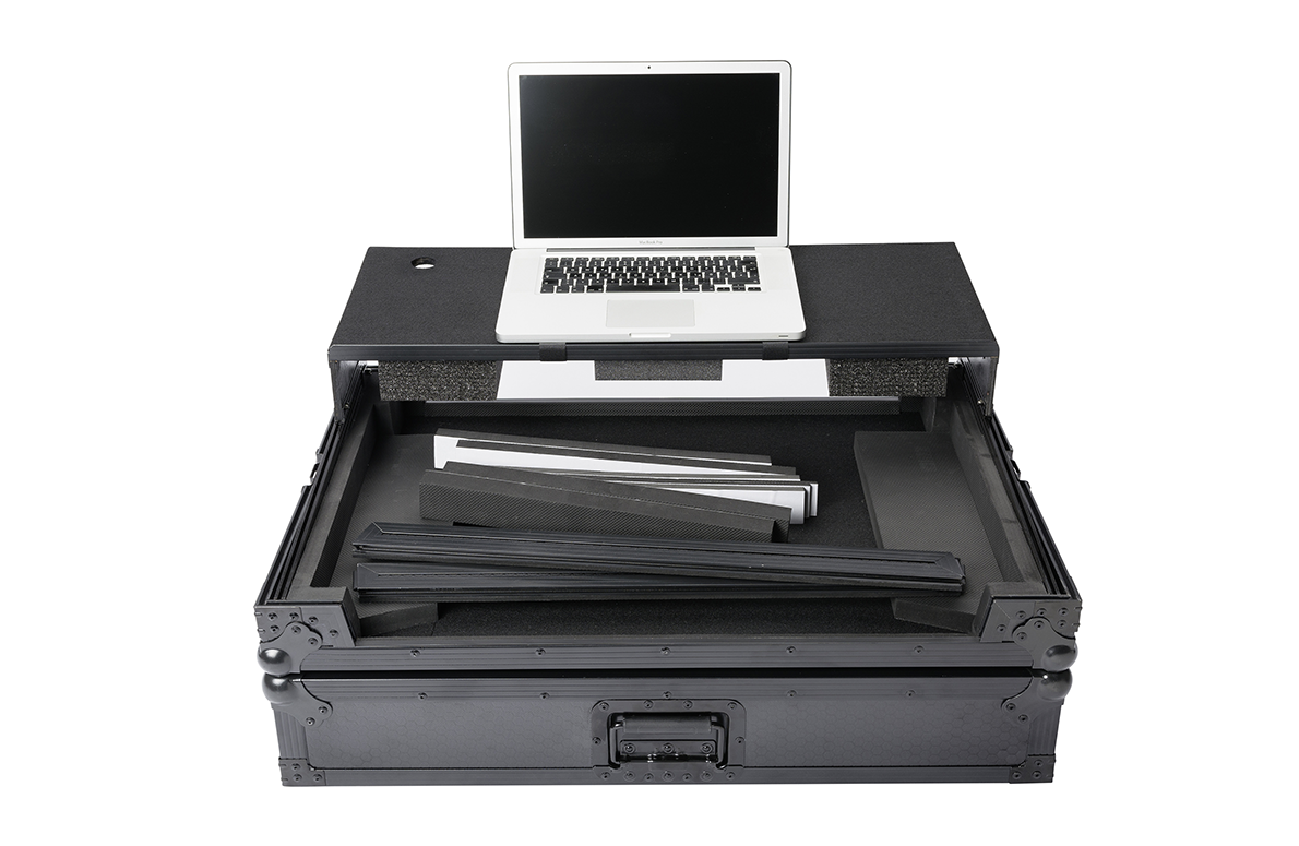 The Magma Multi-Format Workstation XXL Plus is built with DJ performance and equipment safety in mind. Its strong aluminum profiles, spring-loaded butterfly latches, and stackable ball corners provide reliable strength and secure stacking during transport. The padded interior and adjustable high-density foams keep controllers well-protected, while the detachable front and rear covers offer quick access during setups. For added convenience, the removable laptop platform includes two fixing straps to secure laptops (up to 1.2″ thick, including MacBooks) during travel. With thoughtful design features like a cable access port, gliding laptop platform, and reinforced construction, this workstation delivers the ultimate balance of portability, durability, and functionality for professional DJs.