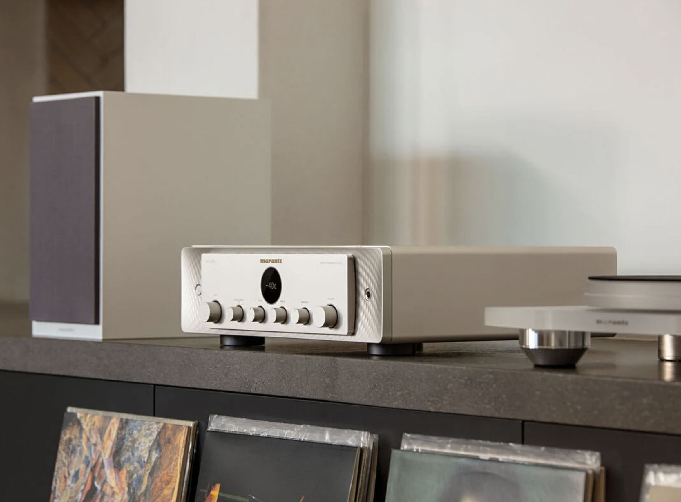 The Marantz MODEL 40n is a high-performance integrated stereo amplifier that blends classic analog warmth with modern streaming convenience. Featuring Marantz’s HDAM-SA3 circuitry, a built-in phono stage, and Wi-Fi/Spotify/UPnP support, it delivers rich, detailed sound for vinyl, digital sources, and high-resolution audio in one elegant, stylish package.