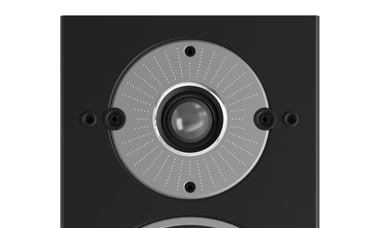 The oversized 29 mm ultra-lightweight soft dome tweeter was specifically developed for the OBERON series, combining well-proven technologies from our existing DALI ranges with new features. The large size of the membrane lets the tweeter generate higher sound pressure with less excursion, keeping the voice-coil motion to a controlled minimum. The tweeter front plate near the dome has been designed with similar geometry to the OPTICON and RUBICON tweeters to create the optimal working conditions for the soft dome. This results in extended frequency response, wide dispersion and low colouration.