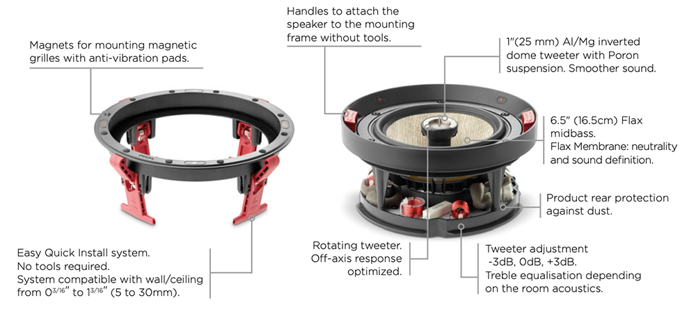 Sound quality is not enough. That's why Focal adds a valuable criterion for integration products: ease of installation. Thanks to the EQI (Easy Quick Install) system, assembly is greatly improved and facilitated, with installation time reduced to a minimum. This ingenious mechanism allows products to be installed by hand, simply and without tools.