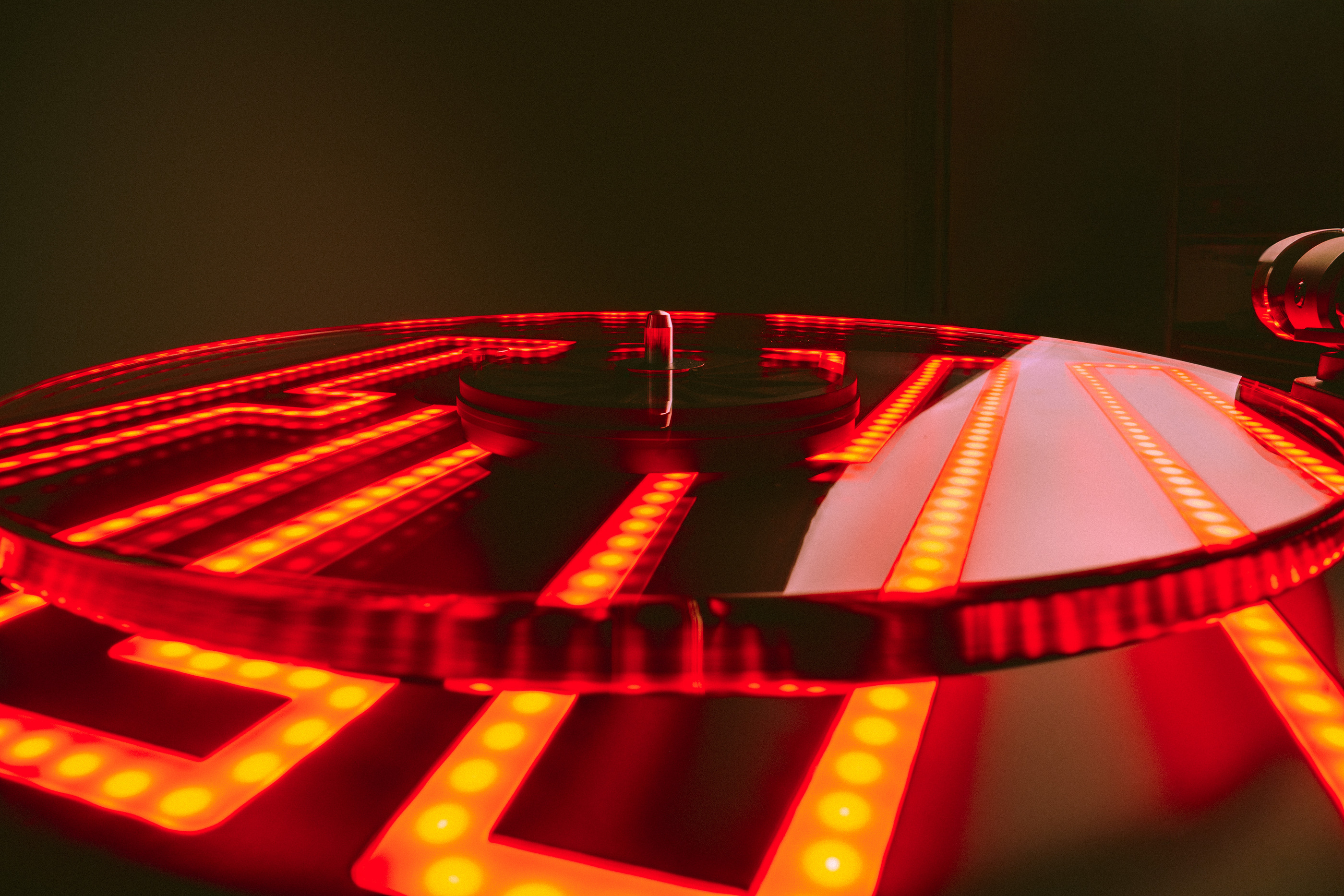 The CNC-machined plinth is a visual standout, featuring built-in LEDs that light up a beautifully detailed Elvis logo. The 1.7kg glass platter ensures zero resonance, eliminating distortion and enhancing playback clarity. Specially selected feet isolate vibrations, preserving audio purity.