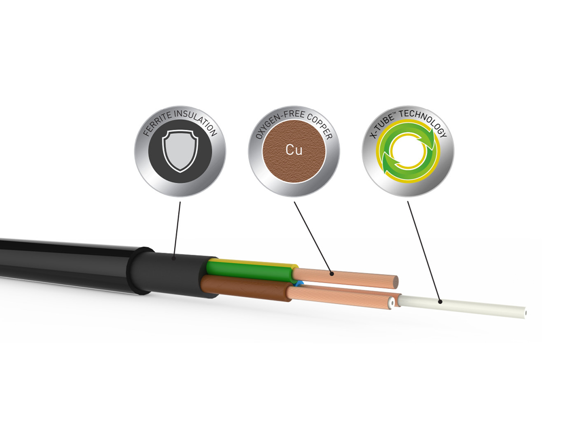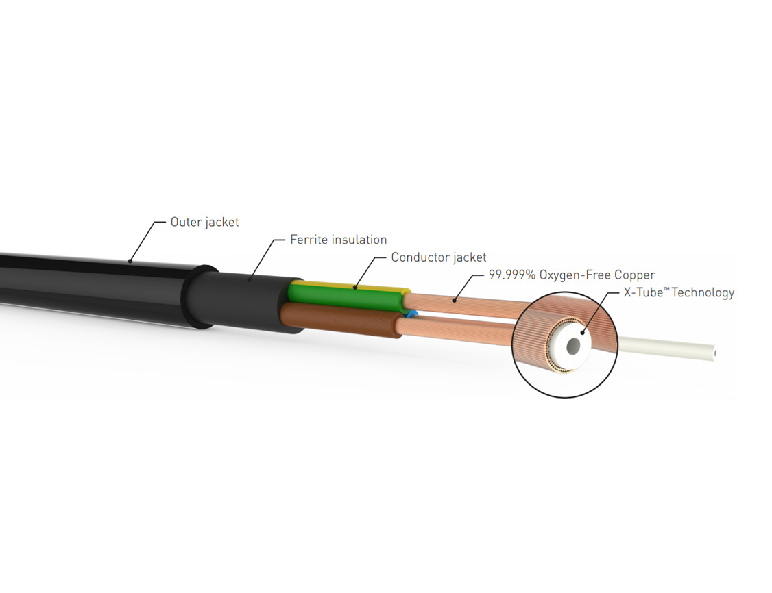 XT5 is designed to be as thin and flexible, and thus practical, as possible. Only the live and neutral cores have been given the X-Tube treatment described above - the earth core (required only under fault conditions) is left in a conventional geometry. And because X-Tube geometry enables the whole cross-sectional area of the cable to be kept to a tidy 1.5 mm sq, XT5 is supremely flexible and usefully slim despite its audiophile potential.