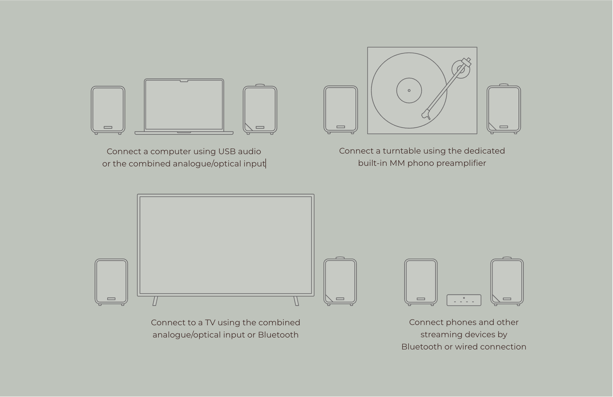 Equipped with Bluetooth aptX HD, they deliver pristine high resolution wireless playback and with switchable connections including a combined analogue/optical input, USB audio input and a dedicated turntable input you can easily plug in auxiliary devices of your choice. Whether you’re streaming, playing vinyl, gaming, or connecting your television for an enhanced viewing experience, MR1 can do it all.