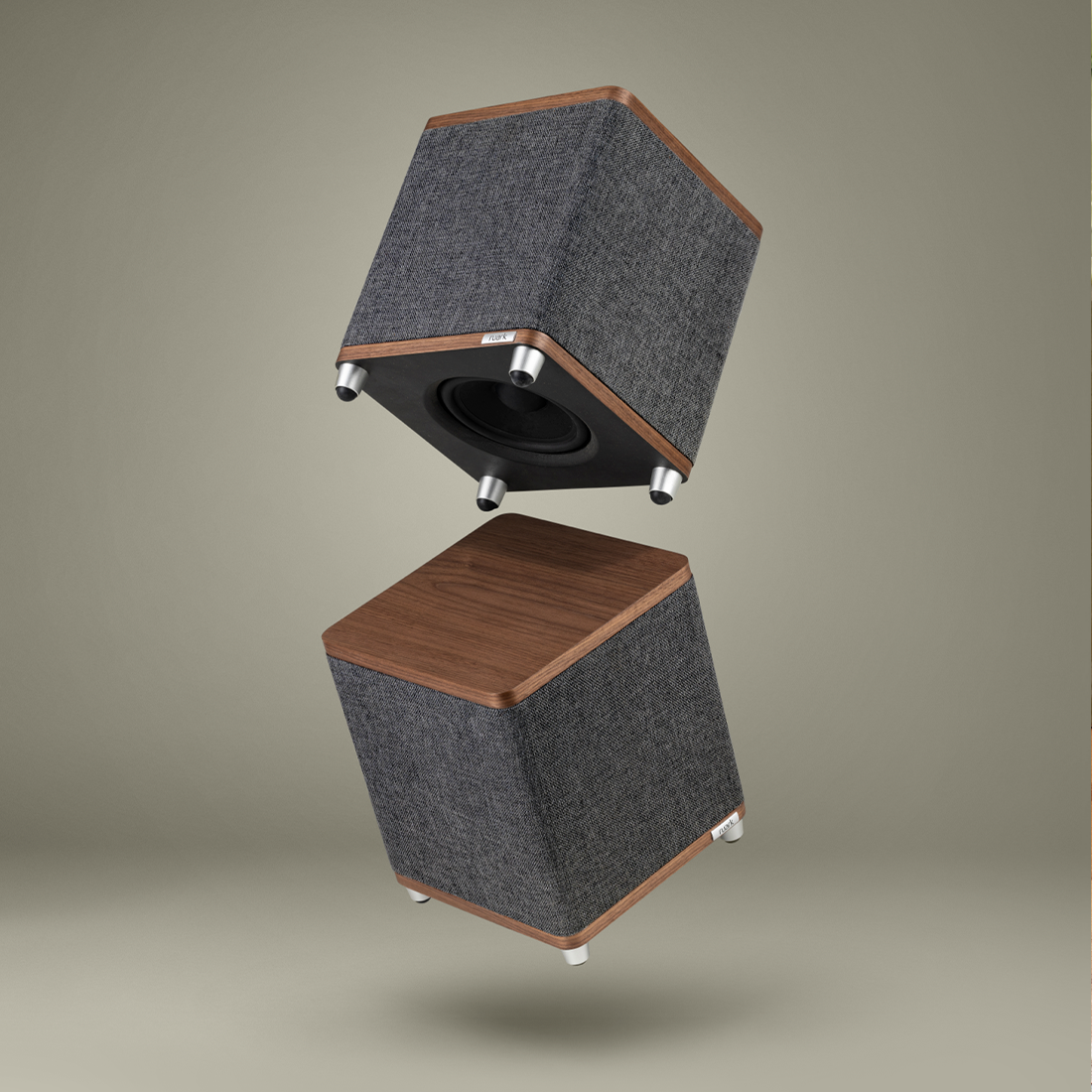 General Specifications Finishes: Rich walnut veneer or charcoal lacquer with dark slate woven fabric grille Power Consumption: 0.5W standby, 7W typical Product Dimensions (H × W × D): 202 × 135 × 165mm (including RotoDial) Product Weight: 2.2kg each