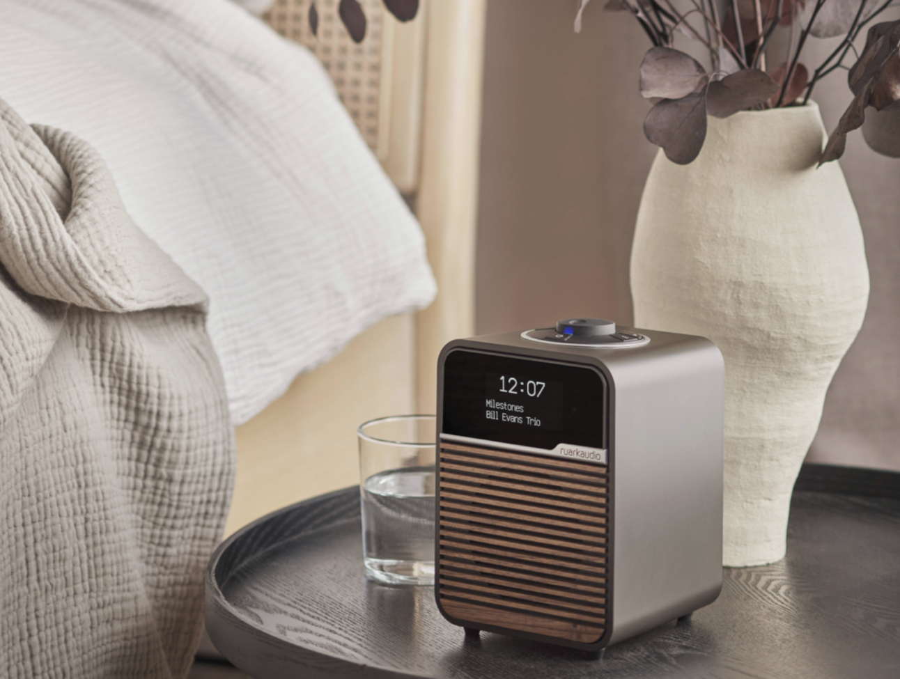 | Features | • Class leading sound with adaptive EQ • DAB, DAB+ and FM Tuner • High quality Bluetooth receiver • RTC with battery backup • Intuitive Rotodial Control System • Linear amplifier with Ruark NaturalSound+ driver • High contrast OLED display with auto dimming • USB-C charge and shuffle playback port • Contoured polymer enclosure with acoustic treatment • Hand-crafted slatted wood grille• Adjustable EQ settings • Easily customised for hotel use • Improved power management with optional battery pack • Optional remote control with 4 direct access pre-sets • Stereo headphone output • Easy-to-use comprehensive dual alarms • Finishes: Light Cream lacquer with Ash grille/ Espresso lacquer with Walnut grille • Dimensions: H175 x W130 x D135mm • Weight: 1.5 Kg |