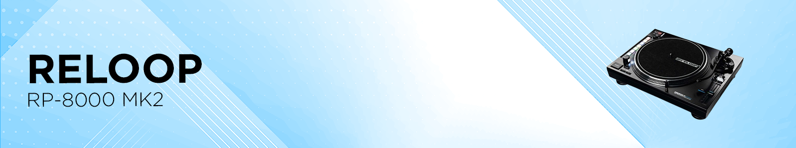 | Features | Reloop RP-8000 MK2Type: Direct-drive turntable Drive: Quartz driven upper-torque direct drive Motor: 16-pole, 3-phase, brushless motor Turntable Speeds: 3 speeds, manual (33 1/3, 45, 78 RPM) Starting Torque: 2.8 - 4.5 kg/cm (adjustable) Adjustable Stop Time: 0.2 - 6 sec. Start-up Time / Change to RPM: < 0.2 sec Wow and Flutter: 0.01% WRMS* Signal-to-Noise Ratio: > 55 dB (DIN-B) Brake System: Electronic brake Platter Material: Die cast aluminium Platter Diameter: 332 mm Platter Weight: Approx. 1.5 kg Tonearm Type: Universal, static balanced, S-shaped Effective Length: 230 mm Overhang: 15 mm Tracking Error Range: < 3° VTA Setting Range: 0 - 6 mm Usable Weight of Pick-ups: 3.5 ~ 8.5 g (incl. headshell 13 ~ 18 g) Anti-Skating Range: 0 - 3 g Effective Tonearm Mass: 30 g Connections: 1x PHONO / 1x LINE Out (gold-plated), 1x GND earth connection, 1x USB port (Type B) Power Supply: AC 115/230 V, 60/50 Hz (EU/US), AC 100 V, 50/60 Hz (JP) Power Consumption: 17 W Dimensions (W x D x H): 458 x 354 x 144.6 mm Weight: Approx. 11.8 kg Accessories Included: Turntable, slipmat, LED needle light, counterweight, phono RCA cable with grounding, USB cable, power cord, operating instructions