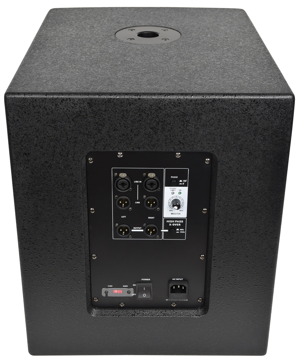 • Controls: Output level, phase switch, high pass x-over (output)