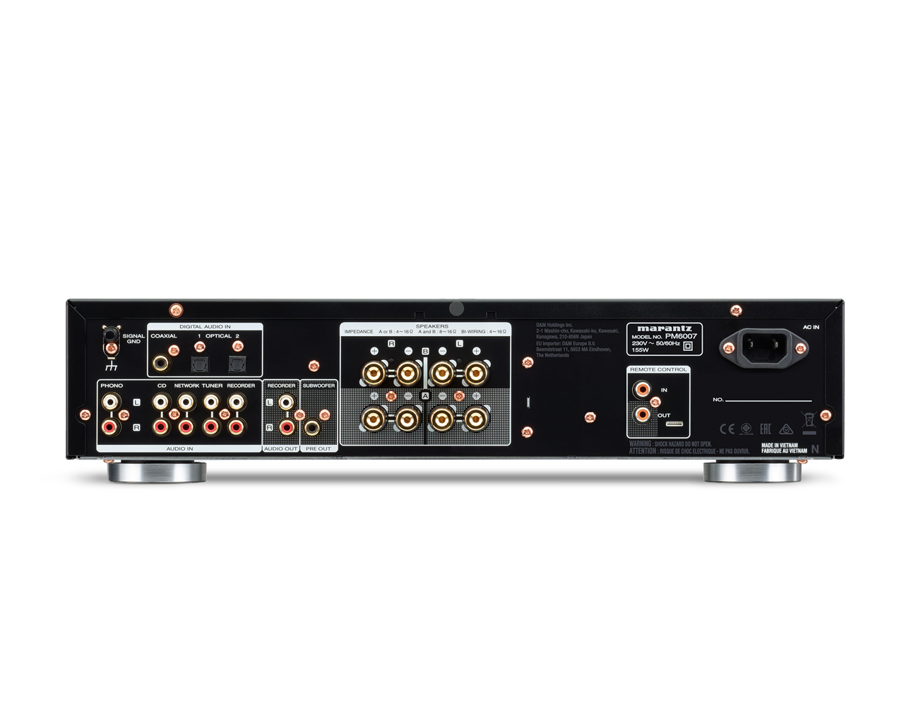 With its classic Marantz styling and robust construction, the PM6007 fits beautifully into any home environment. Built to last with premium components, it delivers reliable, high-fidelity sound day after day. Its intuitive controls and smooth interface make high-end audio simple and enjoyable for everyone.